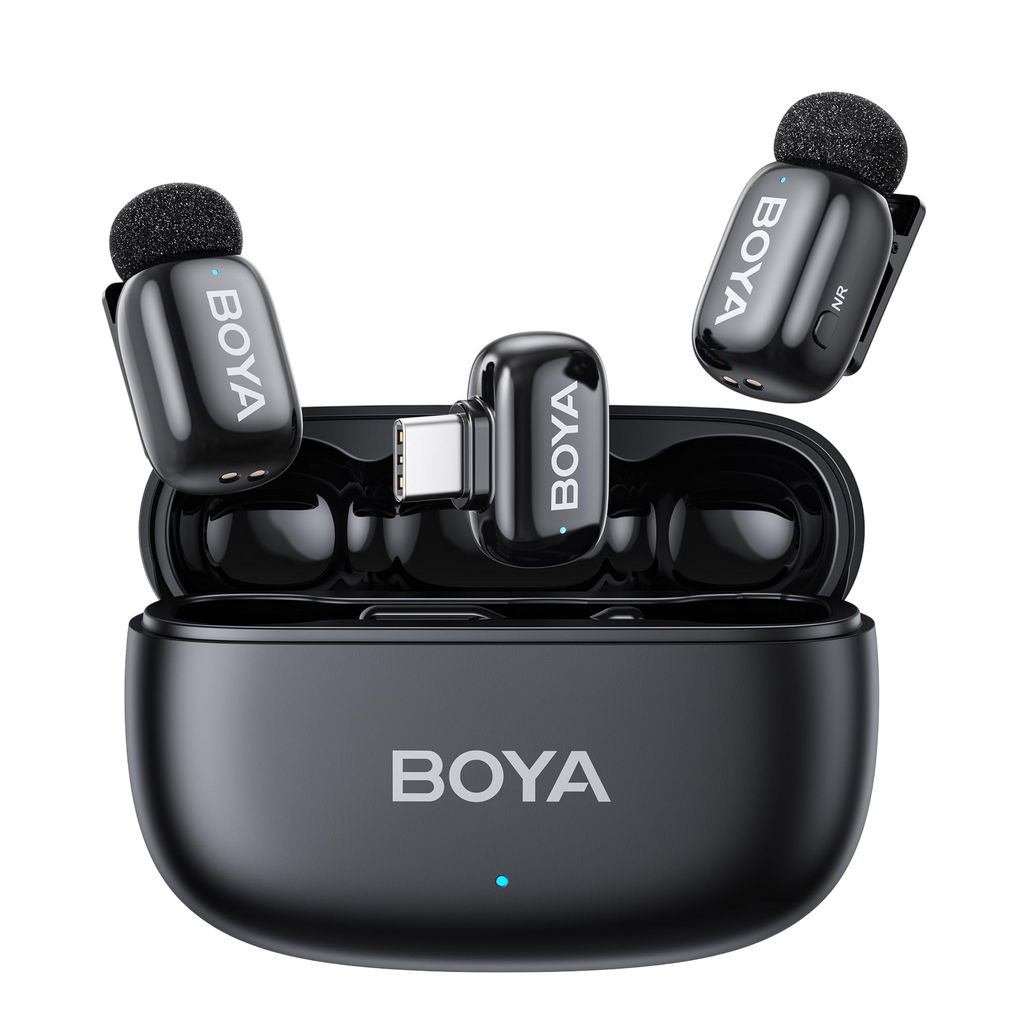 Compact dual wireless lavalier microphone system designed for iPhone 15/16/17 and Android devices.