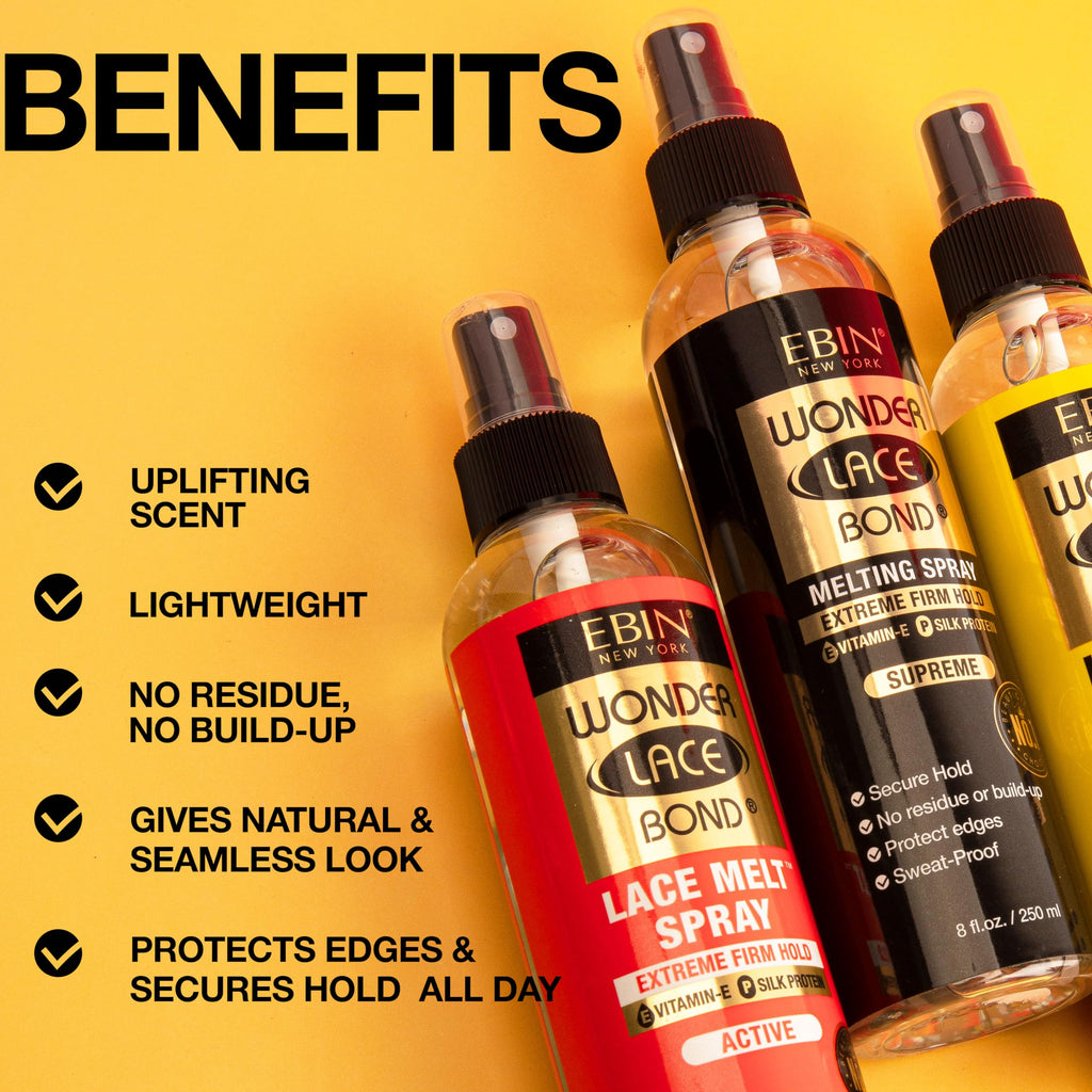 Lace melt spray designed to blend lace seamlessly into the skin for a natural, undetectable finish