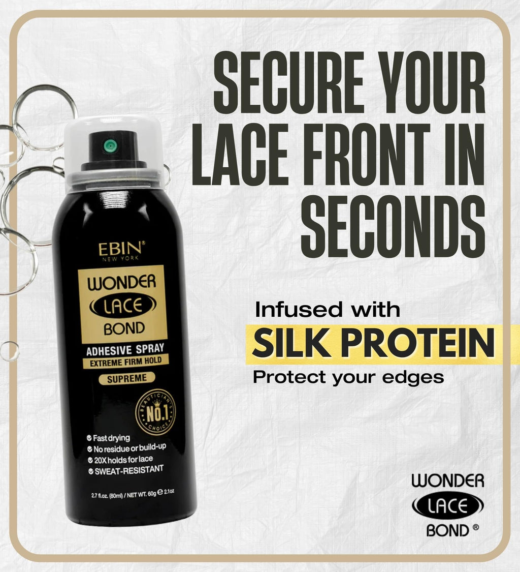 Extreme firm hold adhesive spray designed for secure lace wig and frontal applications.
