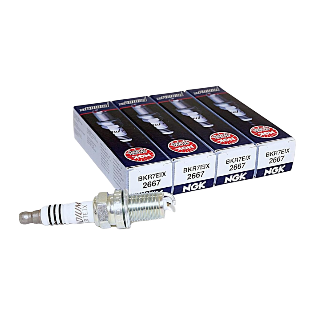 Set of 4 NGK BKR7EIX Iridium IX spark plugs for superior ignition performance.