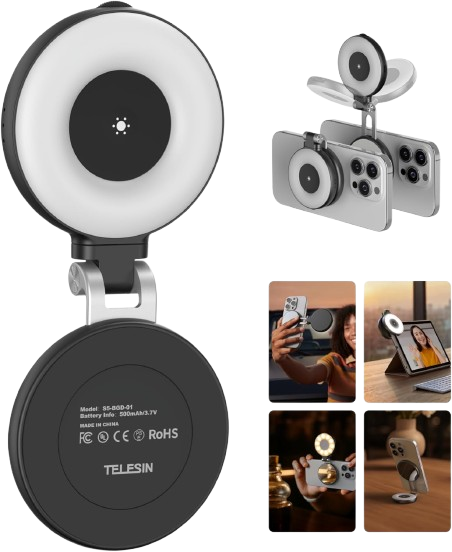 Magnetic selfie light compatible with iPhone MagSafe attachment.